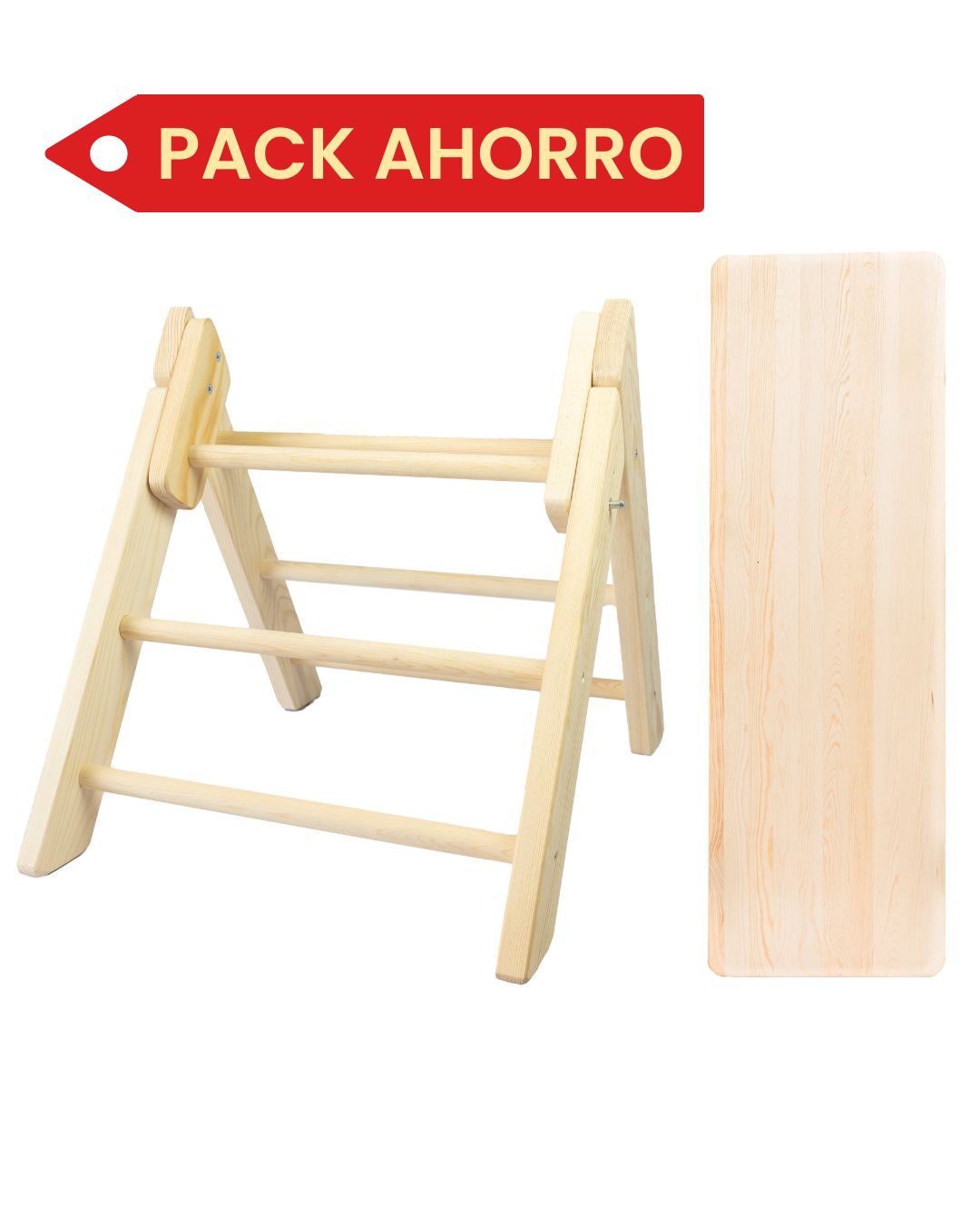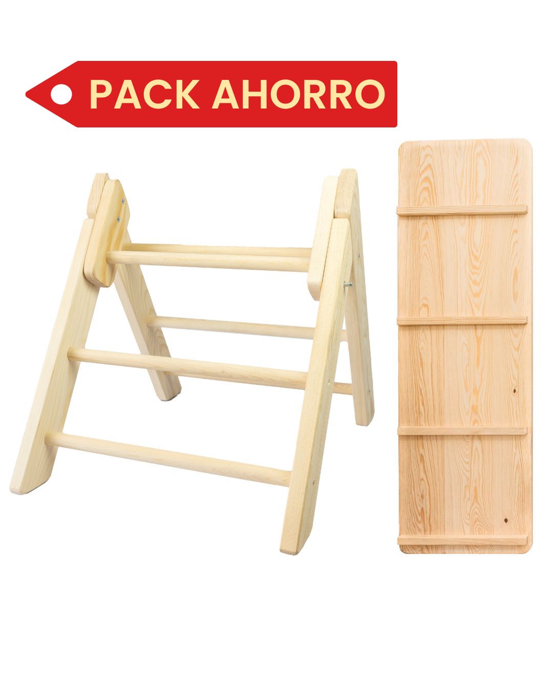 Aprovecha nuestro Pack Pikler Montessori con un ahorro de hasta el 20% en comparación con la compra individual. Este conjunto incluye el Triángulo Pikler y la Rampa Montessori, dos elementos esenciales para fomentar el desarrollo motor, la autonomía y el juego libre de los más pequeños. Fabricados en madera natural de la serranía conquense, con acabados seguros y colores suaves, son la base perfecta para un entorno educativo y sostenible.